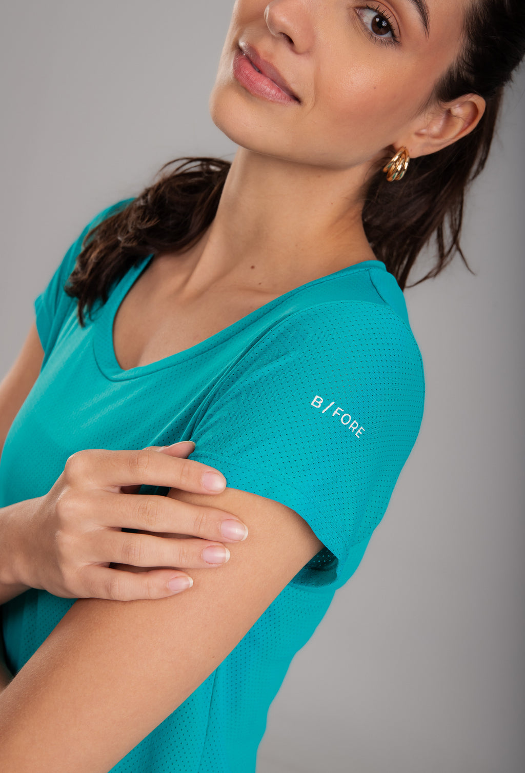 A T-SHIRT TREINO foi criada para deixar o corpo respirar. Parceira de quem tem um lifestyle esportivo, essa peça possui uma textura suave e microporos responsaveis pela   evaporação natural da transpiração, deixando a pele seca e fresca durante os exercícios. A modelagem levemente acinturada, decote arredondado e o detalhe da fenda nas costas garante a bossa extra para os dias de treino.